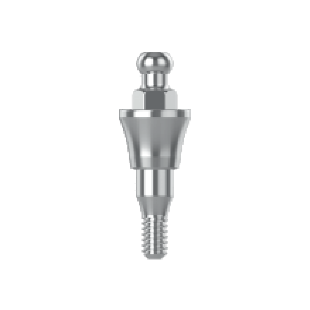 Ball abutment solutions are available for overdenture prosthetics with different gingiva heights. Ball abutments are packed with a silicone ring and metal cap. Abutments are produced of titanium Gr5Â material.